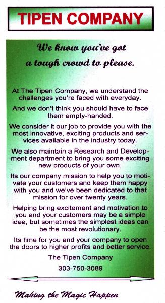 | "Nothing is more fun than  working with The Tipen Company"  |